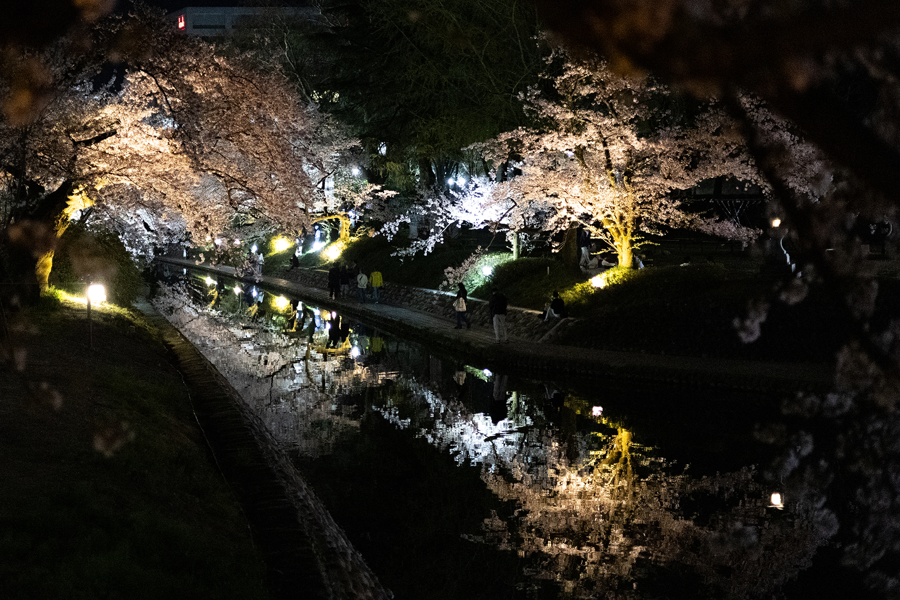 さすが人気スポット松川べりです。平日の夜でも人が多いですね。(富山にしては!ですよ。)