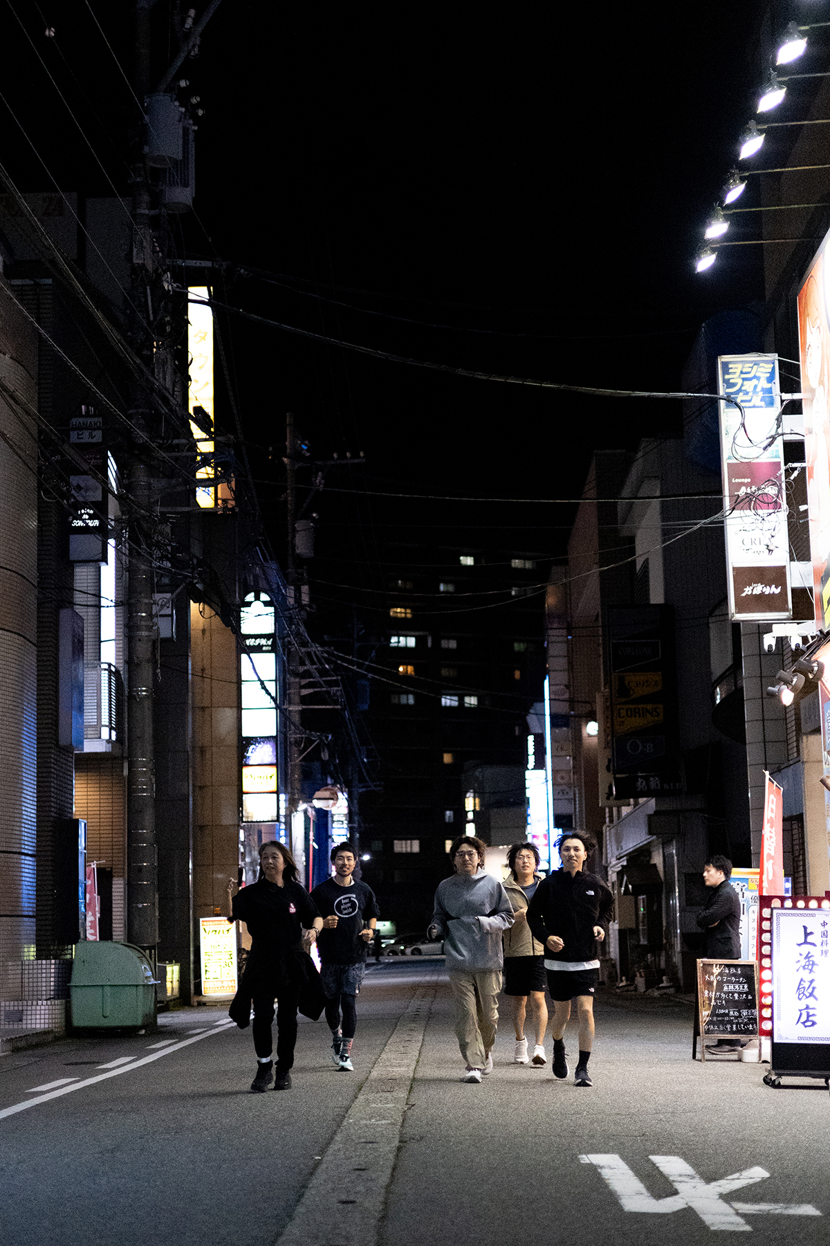 ネオンが呼んでいる夜の街へ。お酒を楽しんだお姉さんに「頑張れー」と応援されながら、楽しくランニング♪
