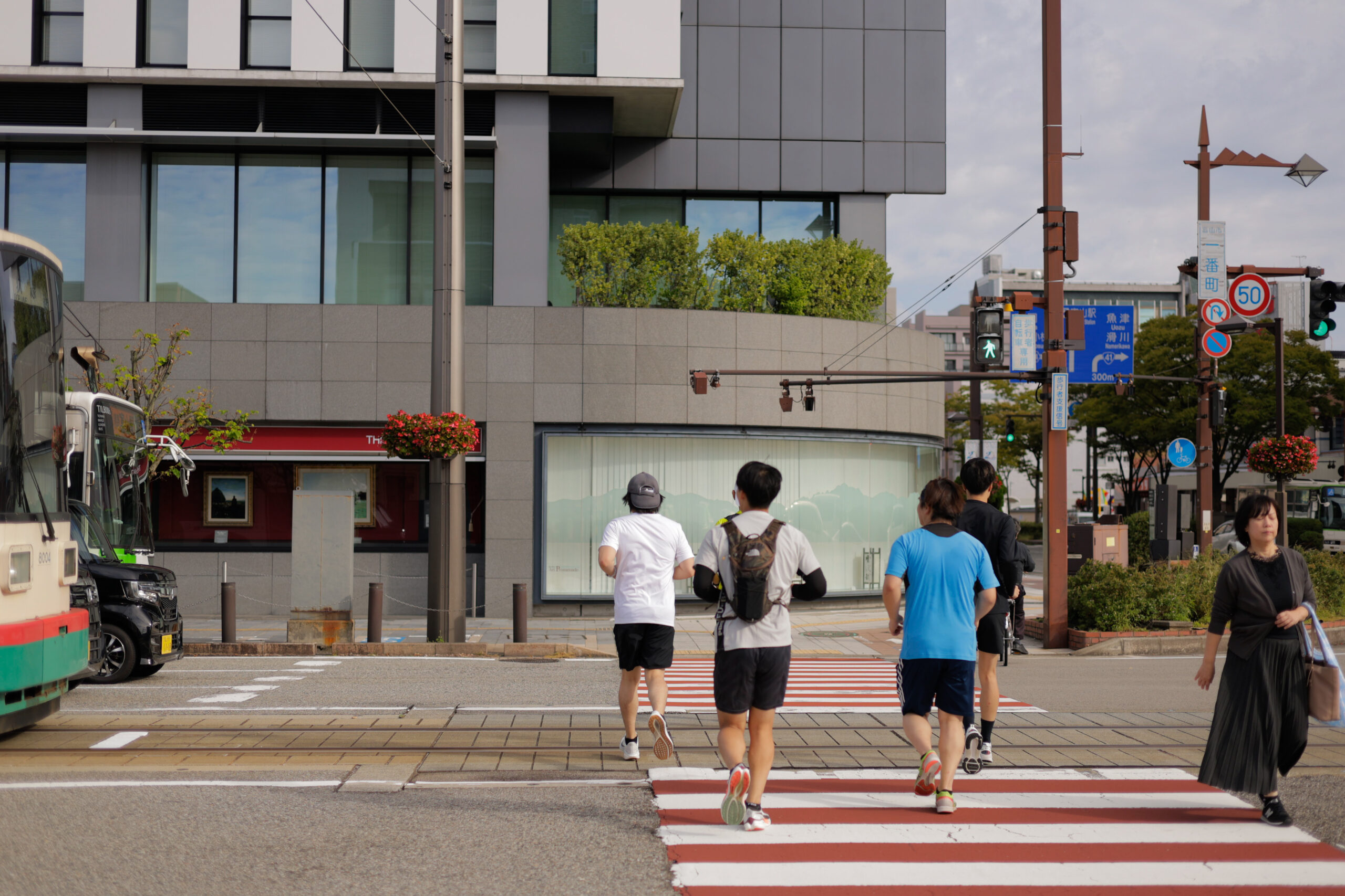 富山市民には馴染みの深い路面電車を眺めながらランニング。
