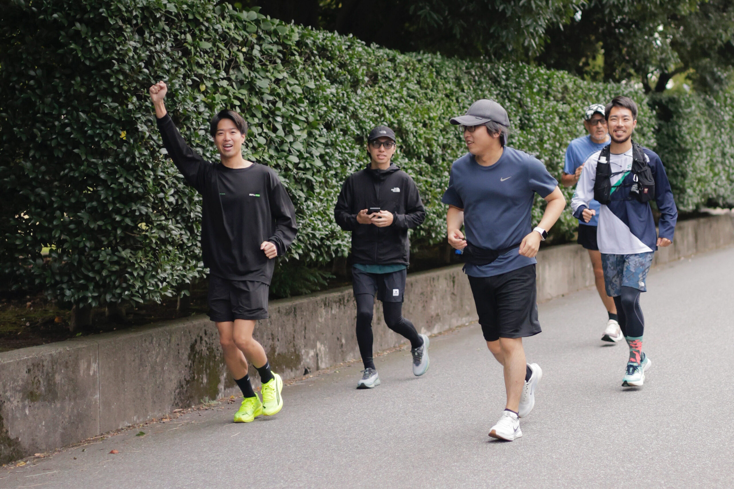 今回も所属店舗、年齢、走力バラバラの愉快なメンバーでスタート。代表取締役会長も参加!